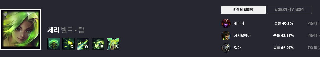 제리는 현재 승률 51.59%로 2티어 챔피언입니다.