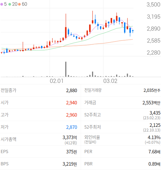 2023년 03월 17일 기준으로 웅진씽크빅의 주당 가격은 2,920원 입니다.