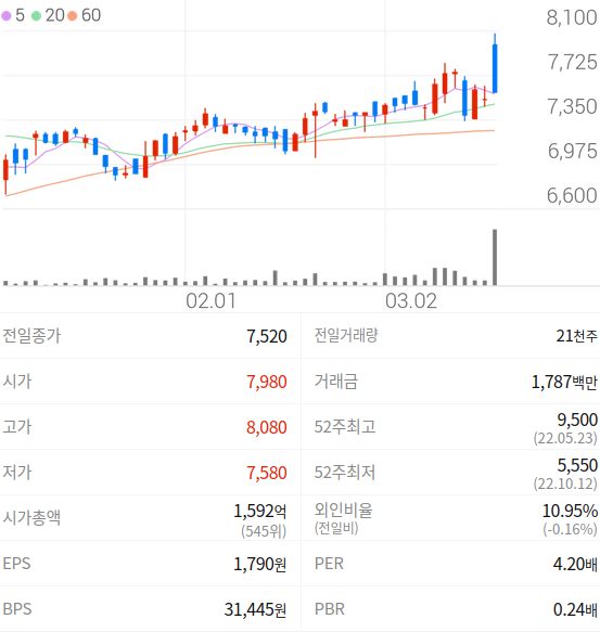 2023년 03월 17일 기준으로 피에이치에이의 주당 가격은 7,580원 입니다.