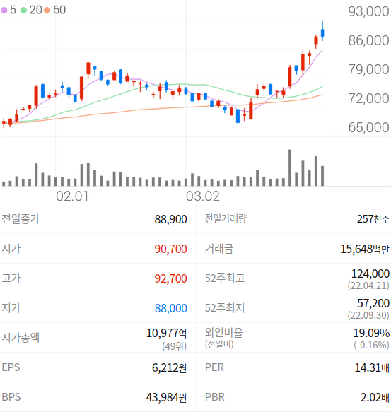 | 2023-03-31 | 생산능력 확대도 고려 중 | 하나증권 | Buy | 107,000 |