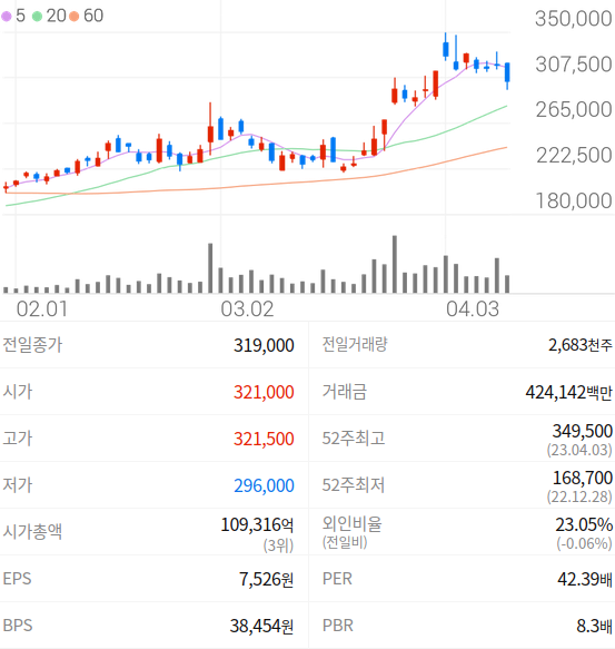 | 2023-04-10 | 추가 상승여력 충분 | 대신증권 | Buy | 430,000 |