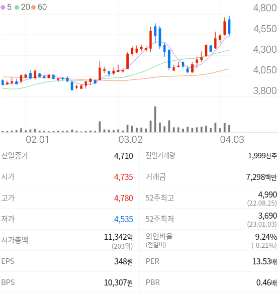 PBR 목표주가(원) | 5,132 | 4,935 |