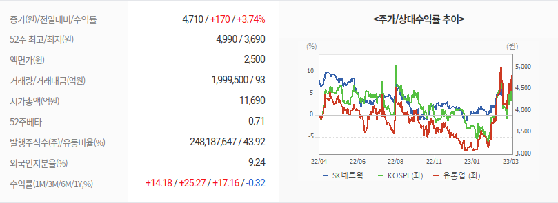 2023년 04월 03일 기준으로 SK네트웍스의 주당 가격은 4,540원 입니다.