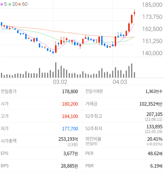 2023-04-10 본격적인 호실적 구간 진입. 모멘텀도 연중 .. SK증권 매수 220,000