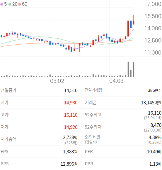 | [2023/04/14] 켐트로닉스 주가 전망 및 종목분석, 목표주가 계산 (0) | 2023.04.17 |
