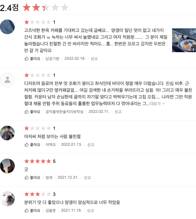 평점은 2.4점으로, 추천드리진 않습니다만, 한번쯤은 가볼만한 곳입니다.