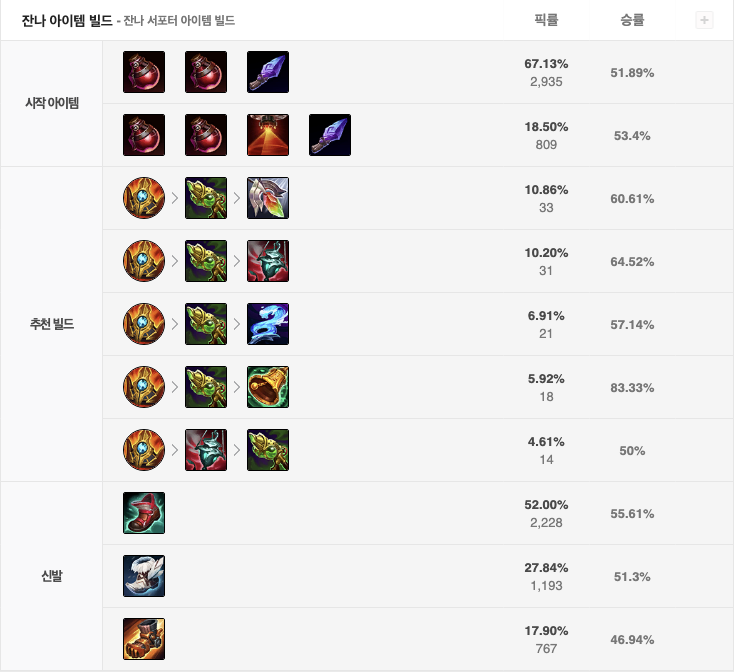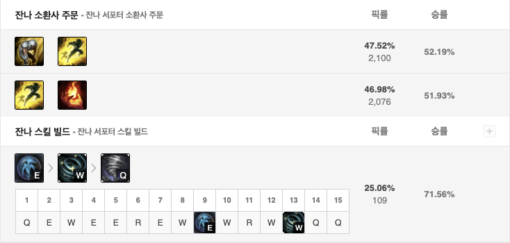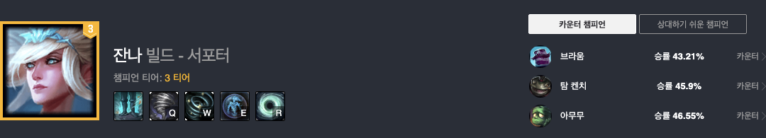 잔나는 현재 승률 51.8%로 2티어 챔피언입니다.