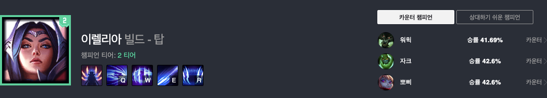 이렐리아는 현재 승률 48.81%로 2티어 챔피언입니다.