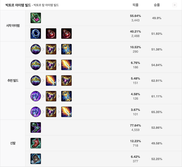 빅토르는 현재 승률 49.23%로 3티어 챔피언입니다.