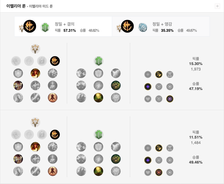 오늘은 롤 시즌 12 미드 이렐리아의 룬 특성 템트리에 대해서 알아보겠습니다.