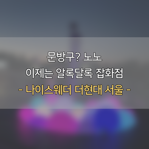 나이스웨더 더현대 서울는 "문방구? 노노 이제는 알록달록 잡화점" 테마로 소개된 생활용품점 입니다.