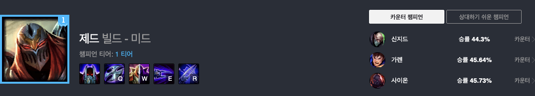 카운터 챔으로 신지드 / 가렌 / 사이온가 있으므로, 밴해주시면 되겠습니다.