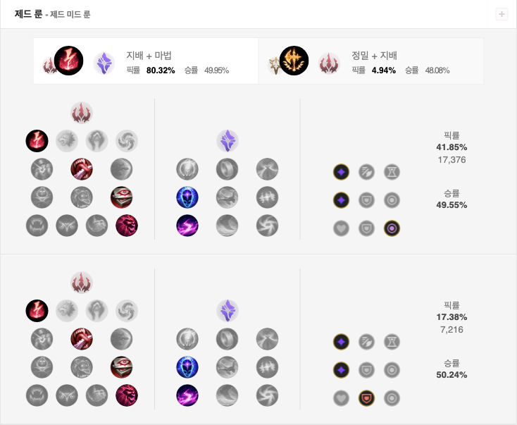오늘은 롤 시즌 12 미드 제드의 룬 특성 템트리에 대해서 알아보겠습니다.