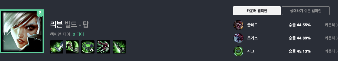 리븐는 현재 승률 51.32%로 2티어 챔피언입니다.