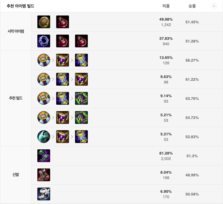이 외에 상대 조합이나 상황에따라 모렐로노미콘 / 마법공학 로켓 벨트을 가시면 되겠습니다.