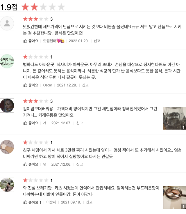 평점은 1.9점으로, 추천드리진 않습니다만, 한번쯤은 가볼만한 곳입니다.