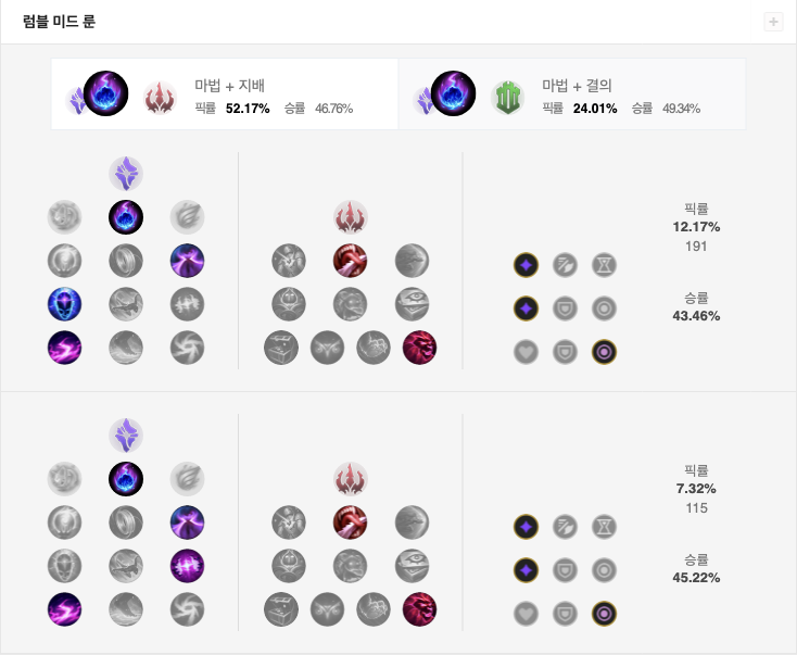 오늘은 롤 시즌 12 미드 럼블의 룬 특성 템트리에 대해서 알아보겠습니다.