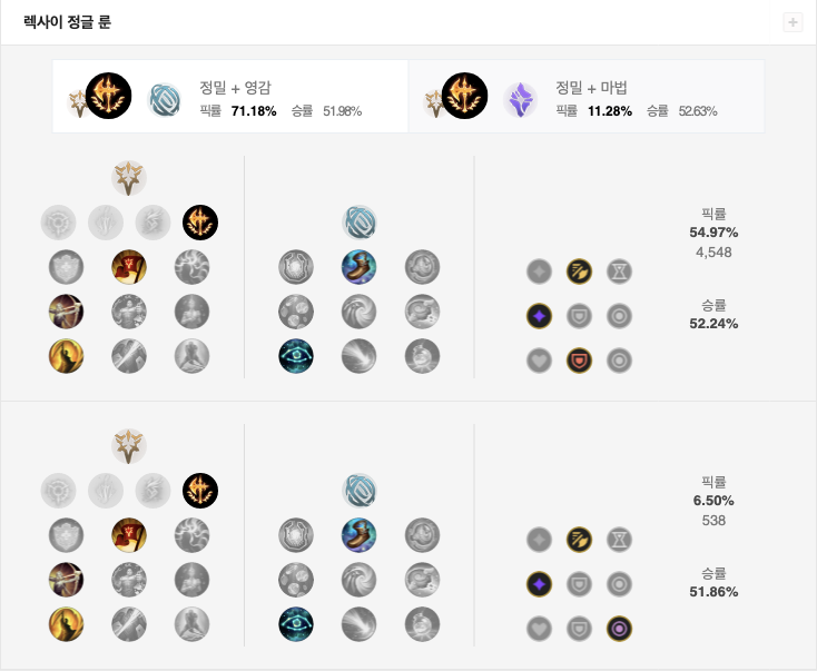 오늘은 롤 시즌 12 정글 렉사이의 룬 특성 템트리에 대해서 알아보겠습니다.