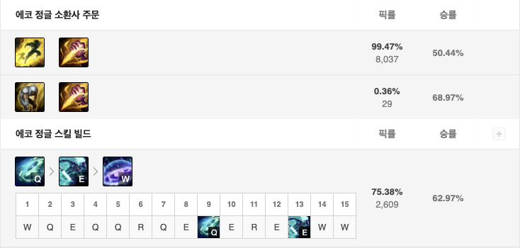 에코는 현재 승률 50.78%로 2티어 챔피언입니다.