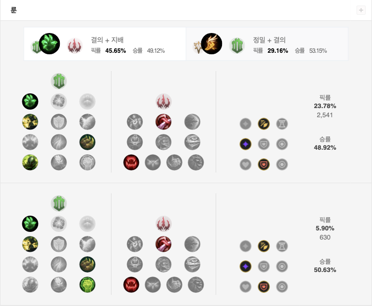 룬은 보통 착취의 손아귀를 활용해서 구성합니다.