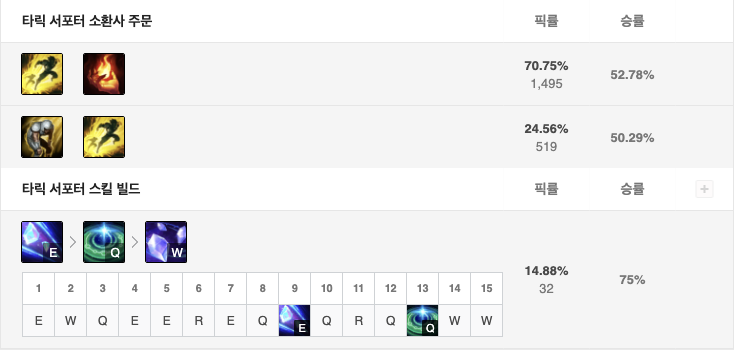 스킬 빌드는 E - Q - W 순서로 마스터 해주면 됩니다.