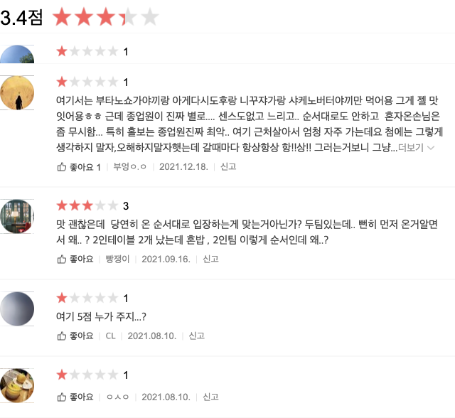 평점은 3.4점으로, 평이 갈리는 곳이니, 리뷰 확인해보고 가세요.