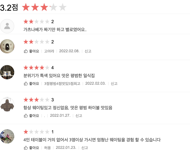 평점은 3.2점으로, 평이 갈리는 곳이니, 리뷰 확인해보고 가세요.