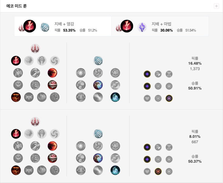 오늘은 롤 시즌 12 미드 에코의 룬 특성 템트리에 대해서 알아보겠습니다.