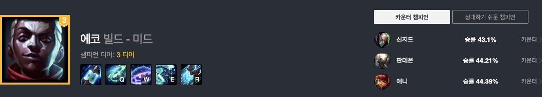 에코는 현재 승률 49.6%로 4티어 챔피언입니다.