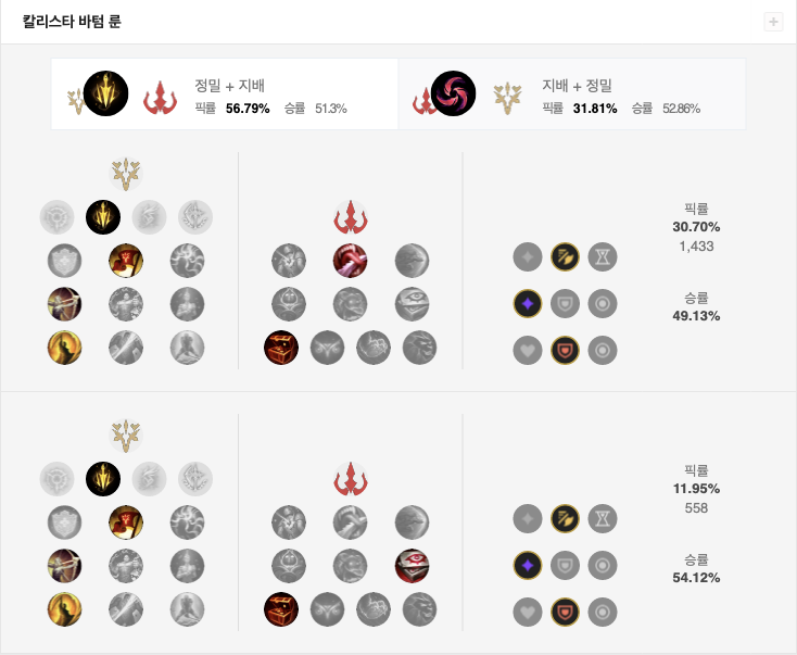 오늘은 롤 시즌 12 원딜 칼리스타의 룬 특성 템트리에 대해서 알아보겠습니다.