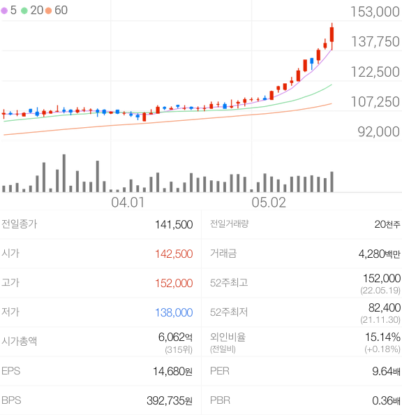 [2022/05/17] 동화기업 주가 전망 및 종목분석, 목표주가 계산 (0) | 2022.05.18 |