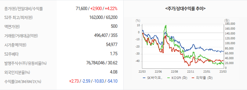 1. SK바이오사이언스 주가