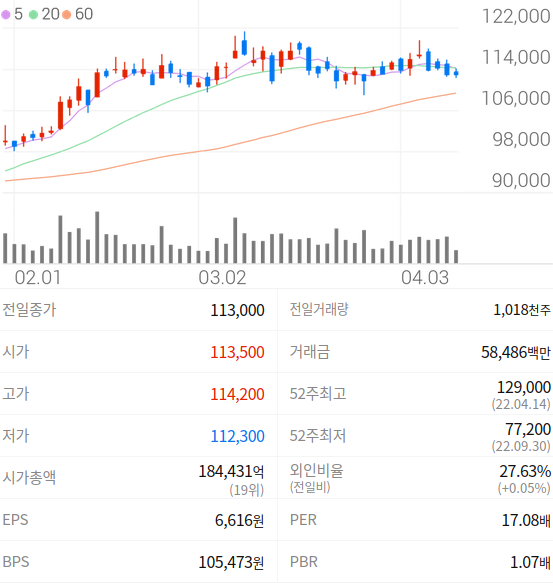 | 2023-04-10 | PBR 1.0배를 넘을 수 있는 기회 | 하이투자증권 | Buy | 165,000.0 |
