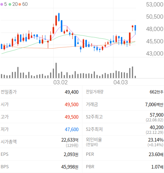 | 2023-04-06 | 아쉬운 비용 영향 | 대신증권 | Buy | 60,000 |