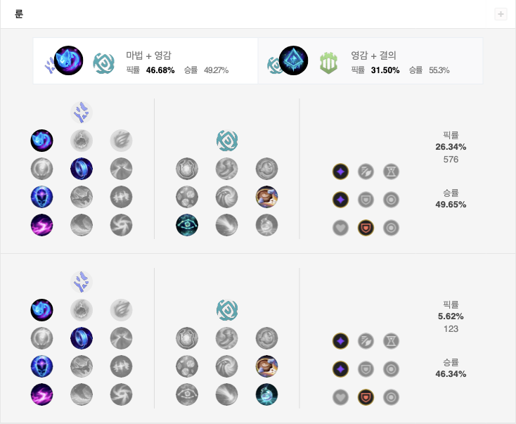 룬은 보통 콩콩이 소환를 활용해서 구성합니다.
