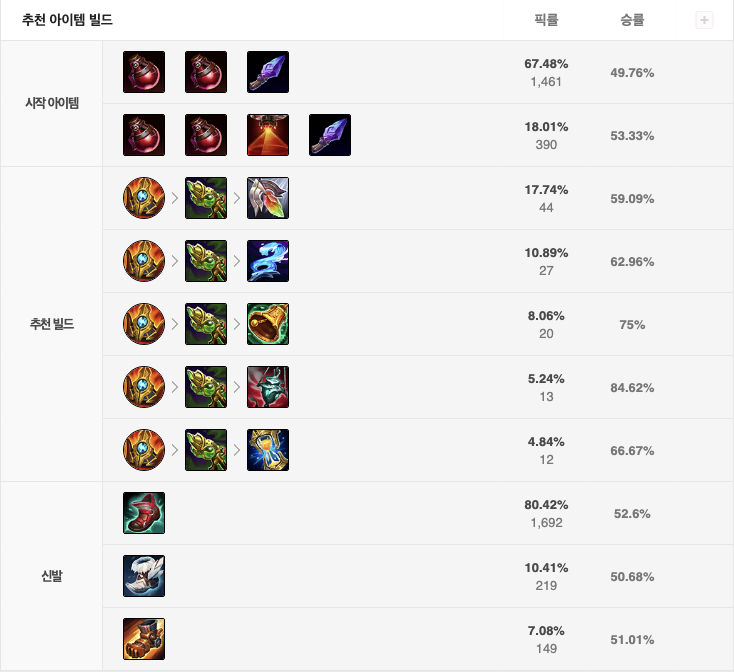 스킬 빌드는 E - W - Q 순서로 마스터 해주면 됩니다.