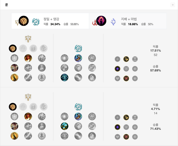 룬은 보통 집중 공격를 활용해서 구성합니다.