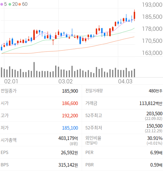 2023-04-06 | P/E 7.5배, P/B 0.75배 달성에 도전 | 키움증권 | Buy | 260,000 |