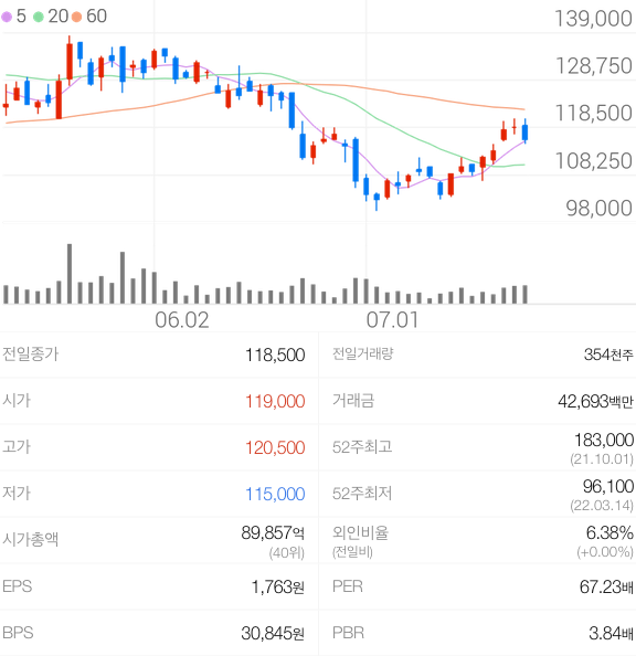 | 2022-07-22 | 2Q22 Review: 컨센상회, 서프라이즈! | 교보증권 | Buy | 170,000 |