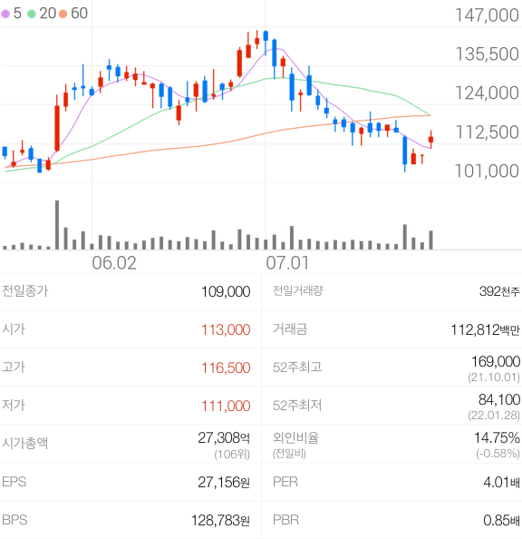 | [2022/07/27] 현대제철 주가 전망 및 종목분석, 목표주가 계산 (0) | 2022.07.28 |
