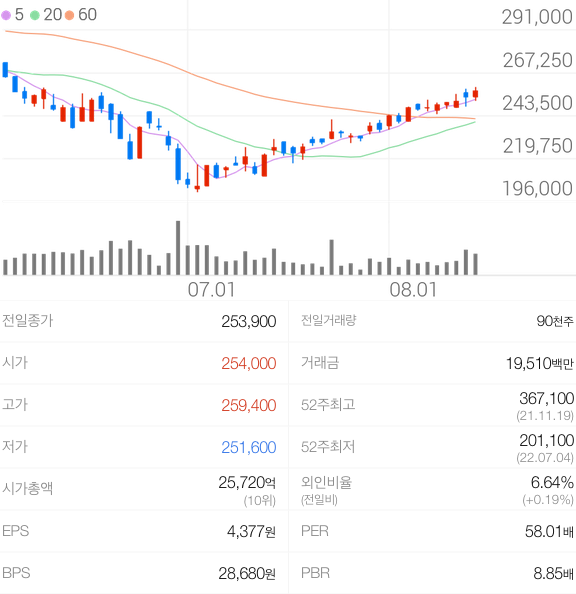 | 2022-08-12 | 3분기 실적 성장 재개 | 하나금융투자 | Buy | 380,000.0 |