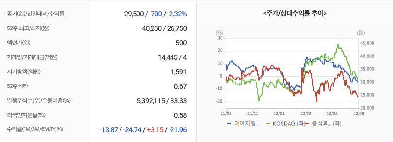 2022년 08월 18일 기준으로 에이치엘사이언스의 주당 가격은 29,500원 입니다.